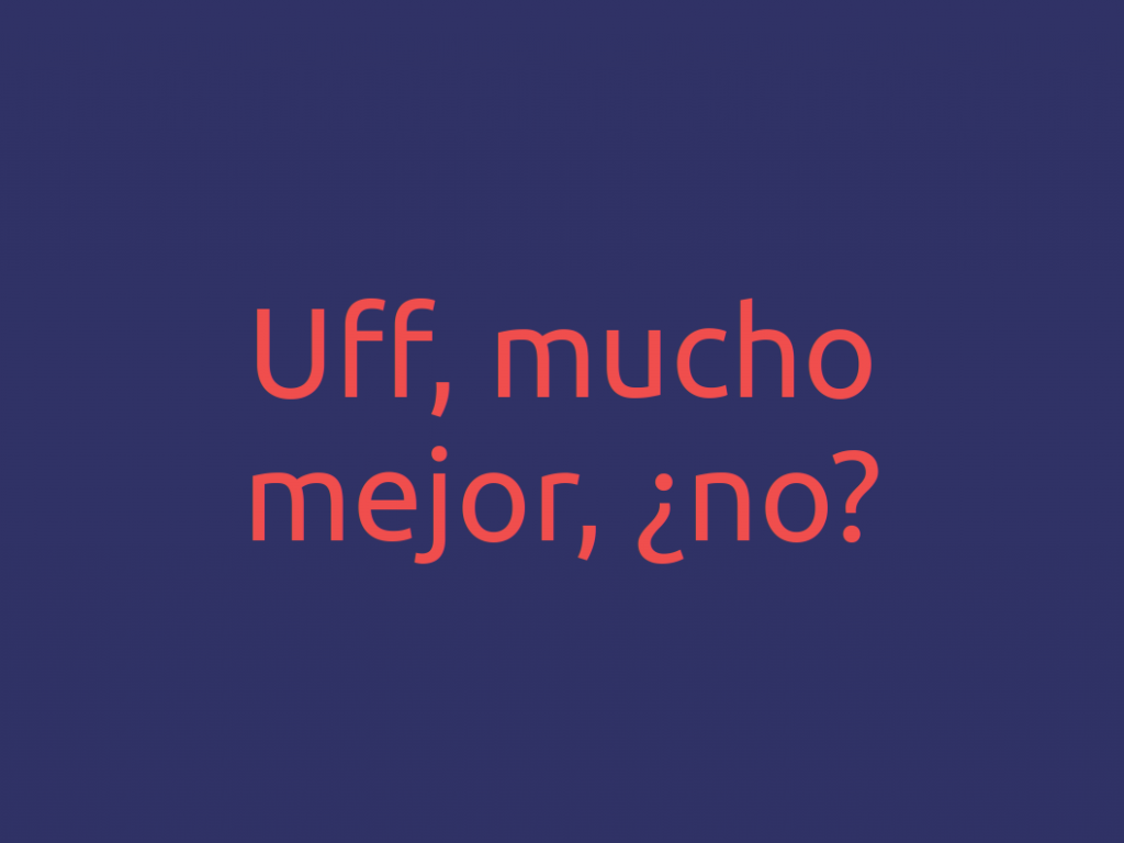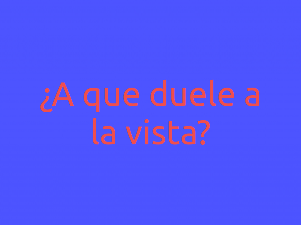 En caso de que el fondo de la diapositiva sea negro, el blanco para el texto funciona muy bien. En el caso de fondo blanco, el texto en negro, ¿no? Pues no. Prueba un gris con un 80% de negro, verás que queda mucho más elegante sin perder contraste. Si te decides por cualquier otro color para el fondo, busca un color de texto que contraste, pero ¡cuidado con los colores demasiado estridentes! Mira este ejemplo.