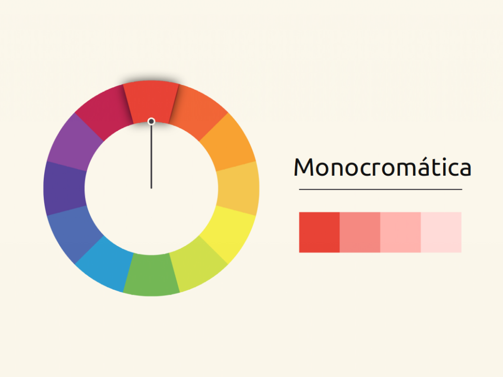 - Monocromáticos: Se trata del mismo tono, pero con diferente saturación.