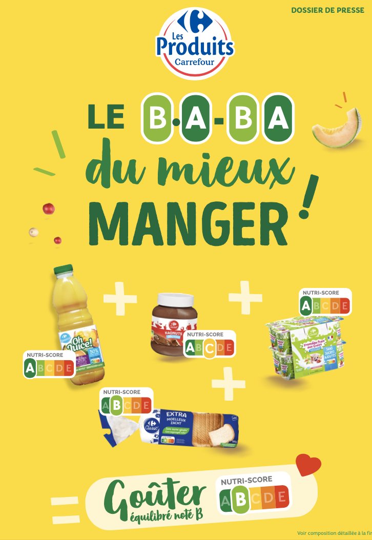 Otro uso no previsto para Nutri-Score es el empleo para el diseño de menús completos. Sin embargo, hace pocos días pudimos ver esta imagen en las redes sociales, en la que se hace una estimación de Nutri-Score para un menú dirigido al público infantil. En este caso, que parece proceder de Carrefour Francia, se realiza un cálculo de la calificación de un menú en base a las calificaciones individuales de los alimentos que lo componen. El resultado es una B (verde claro), es decir, bastante saludable, aunque ningún nutricionista que se precie recomendaría a unos padres que le dieran esta comida a sus hijos.